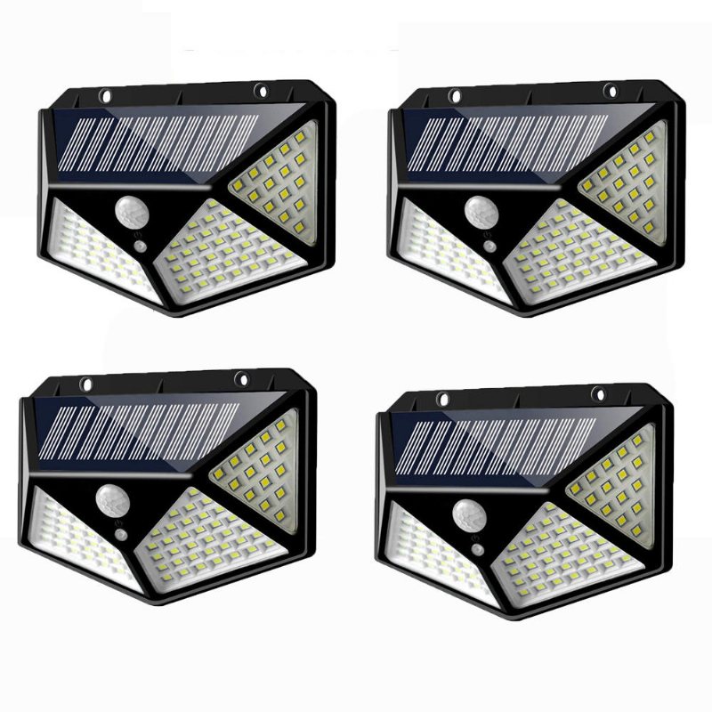 4st 100 Led Solar Powered Pir Rörelsesensor Vägglampa Utomhus Trädgårdslampa 3 Lägen