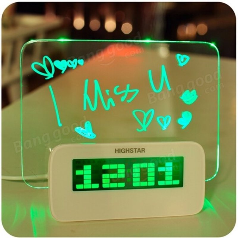 Highstar Model B Fluorescerande Anslagstavla Väckarklocka Memo Kalendertermometerljus