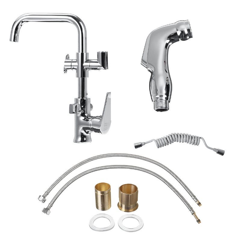 Krom Köksblandare Dubbel Spruta Vridbar Pip Fjäder Utdragbar Sprayblandare