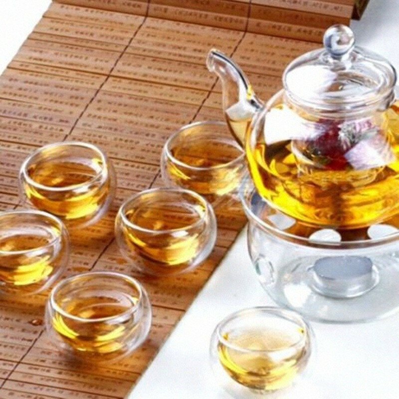 Tekanna I Borosilikatglas Värmebeständig Tekannavärmare 6 Tekoppar Med Dubbla Väggar